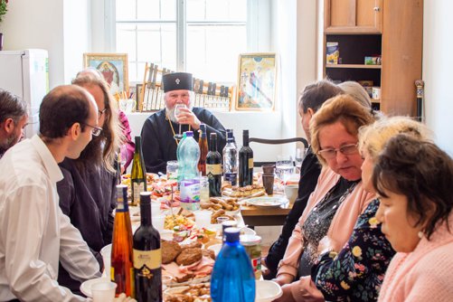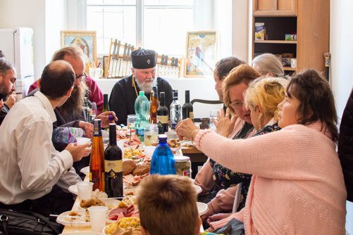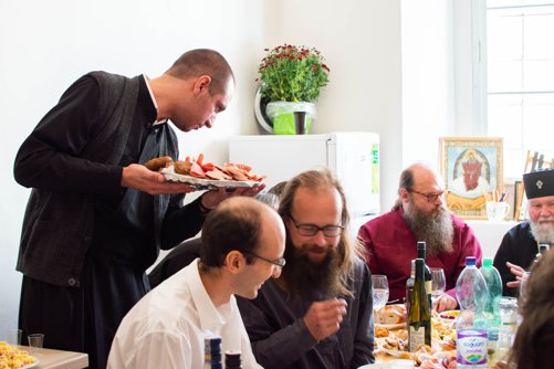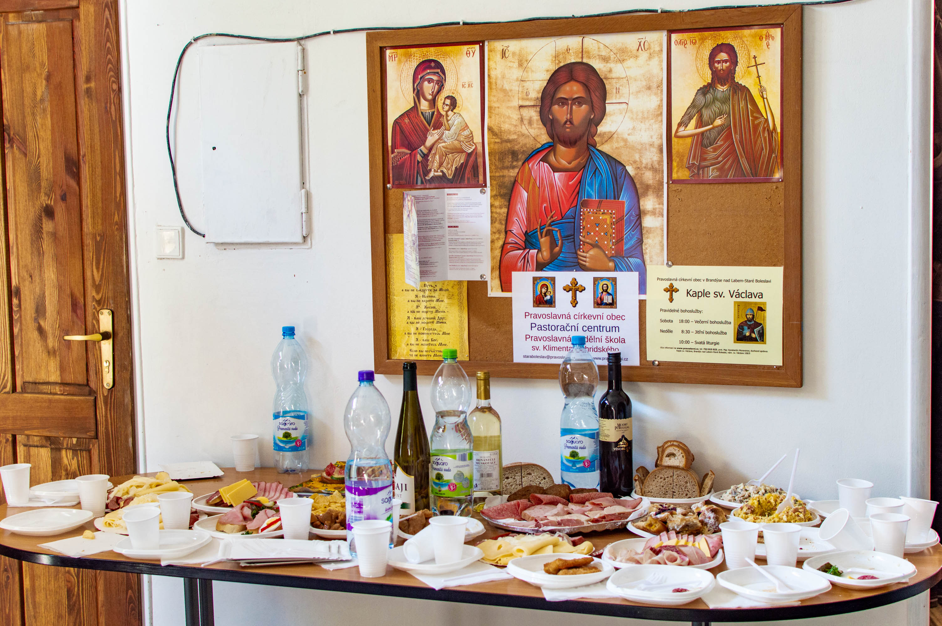 Po sv. Liturgii jsme se odebrali do pastoračního centra naší církevní obce naproti chrámu přes ulici, kde na poutníky čekalo bohaté pohoštění, které pro ně připravili členové naší církevní obce. Zde věřící též mohli navštívit nově vybudovanou pravoslavnou kapli sv. Václava, kde se ve Staré Boleslavi nyní nově konají pravoslavné bohoslužby.
