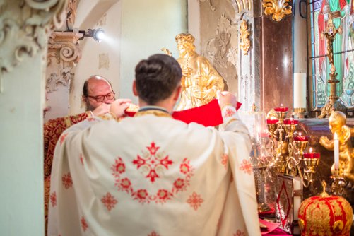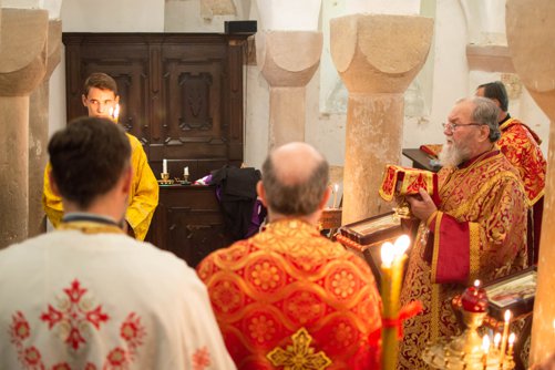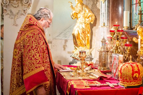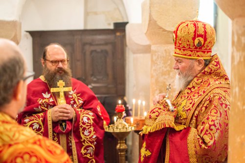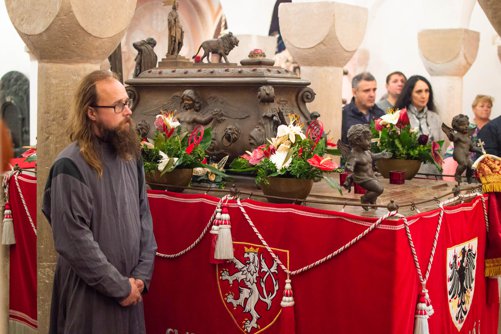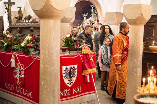 Archijerejská poutní sv. Liturgie, kterou sloužil Jeho vysokopřeosvícenost Michal, arcibiskup pražský a českých zemí, se letos konala v kryptě kostela sv. Václava. Krypta je původním starobylým chrámem sv. Kosmy a Damiána, před kterým byl podle tradice zavražděn sv. Václav. Uprostřed tohoto chrámu pak leží hrob sv. Václava s částí ostatků světce.