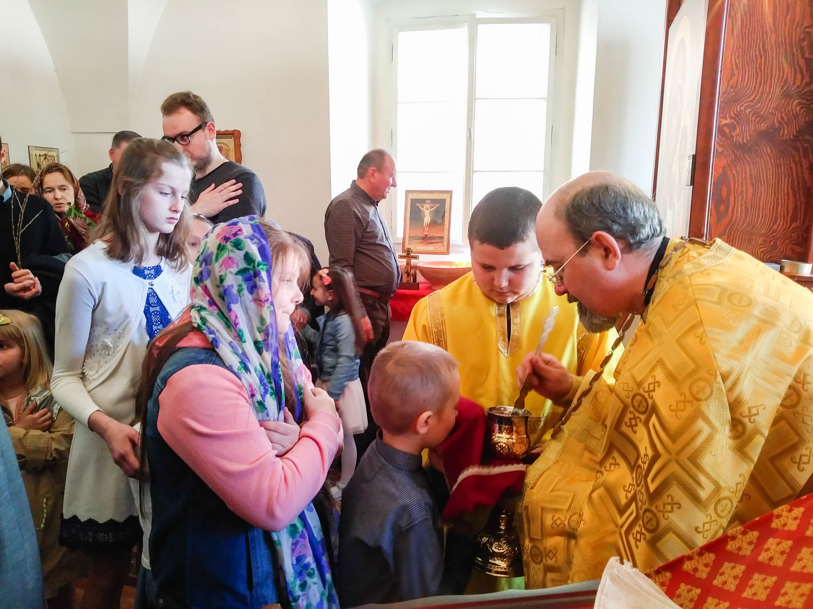 Věřící přišli do chrámu s větvičkami a květinami a vítali jako před dvěma tisíci lety slavnostně našeho Pána Ježíše Krista, který přišel, aby se za naše hříchy obětoval a dal nám věčný život.