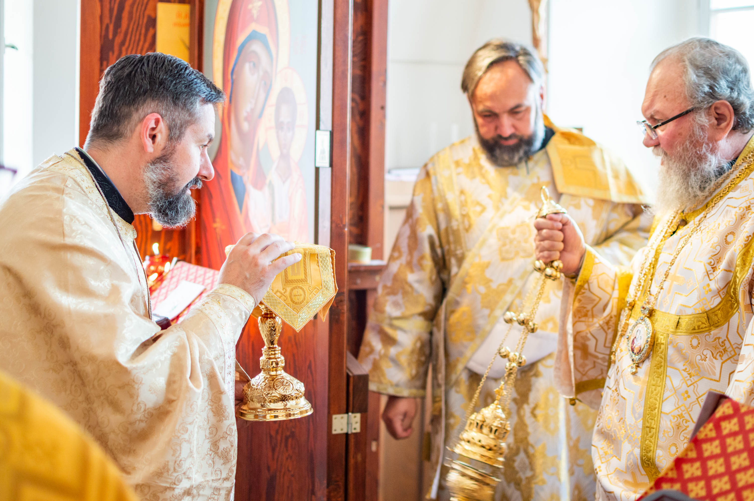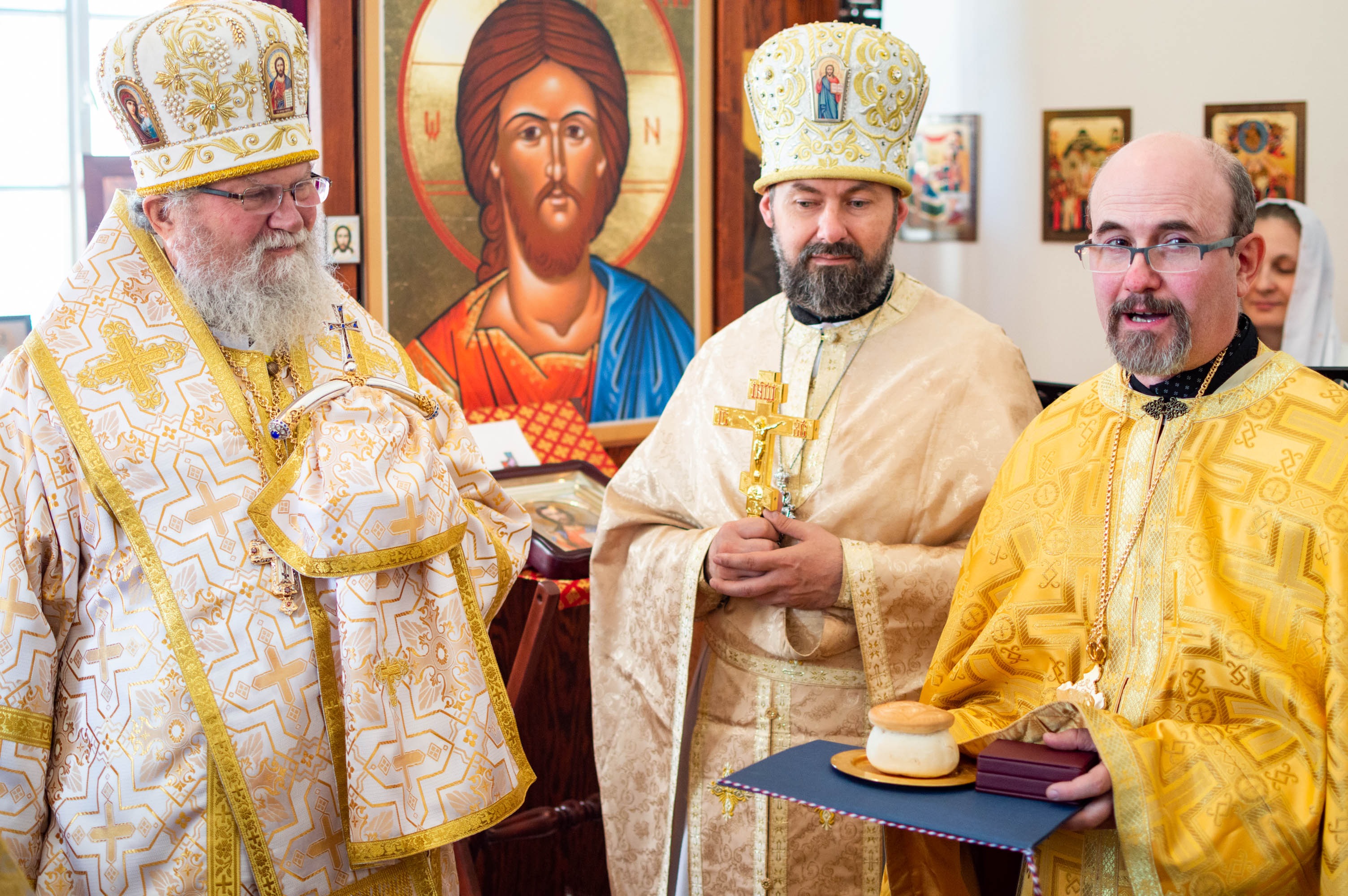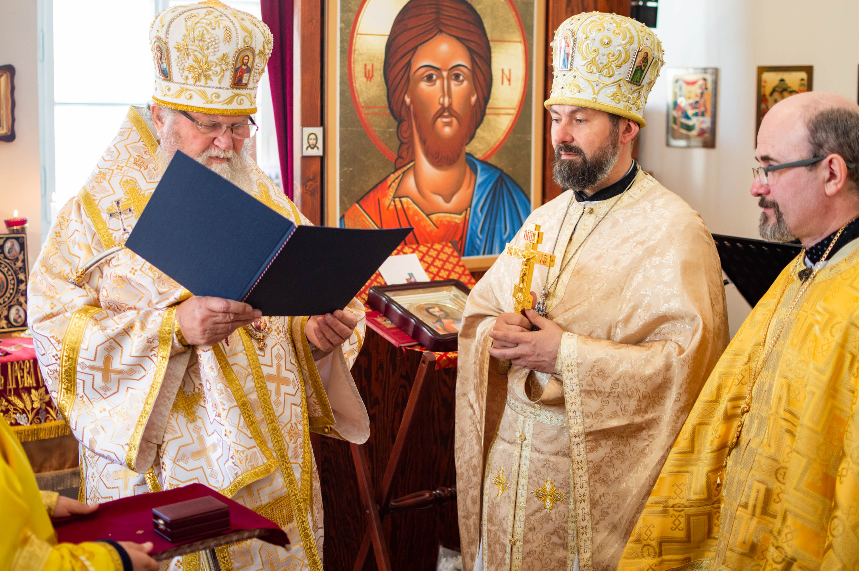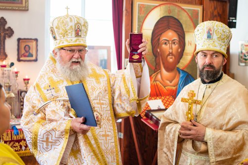 Během sv. Liturgie vladyka vyznamenal otce Konstantina právem nošení zlatého kříže s ozdobami a pamětní medajlí sv. Cyrila a Metoděje.