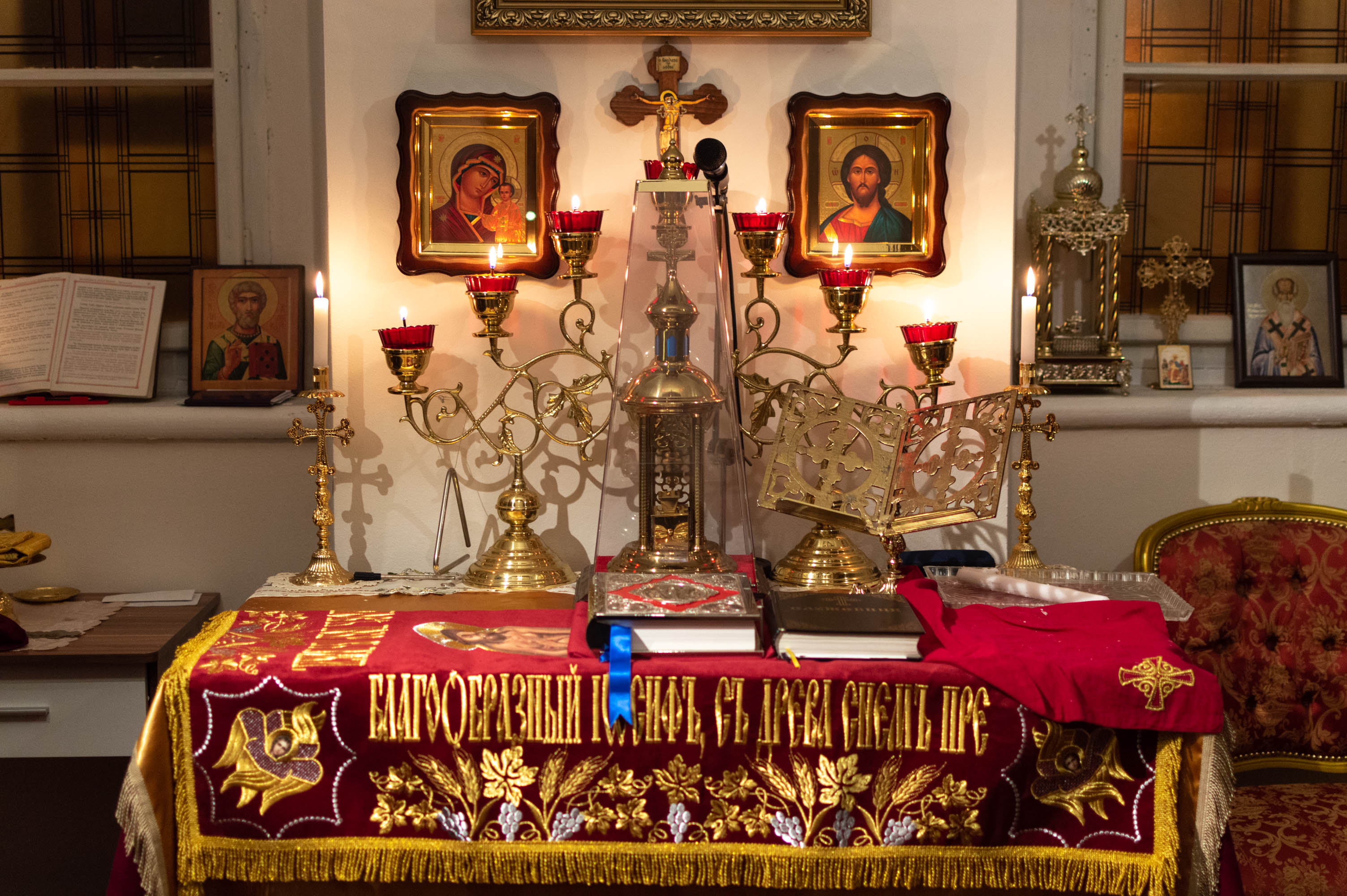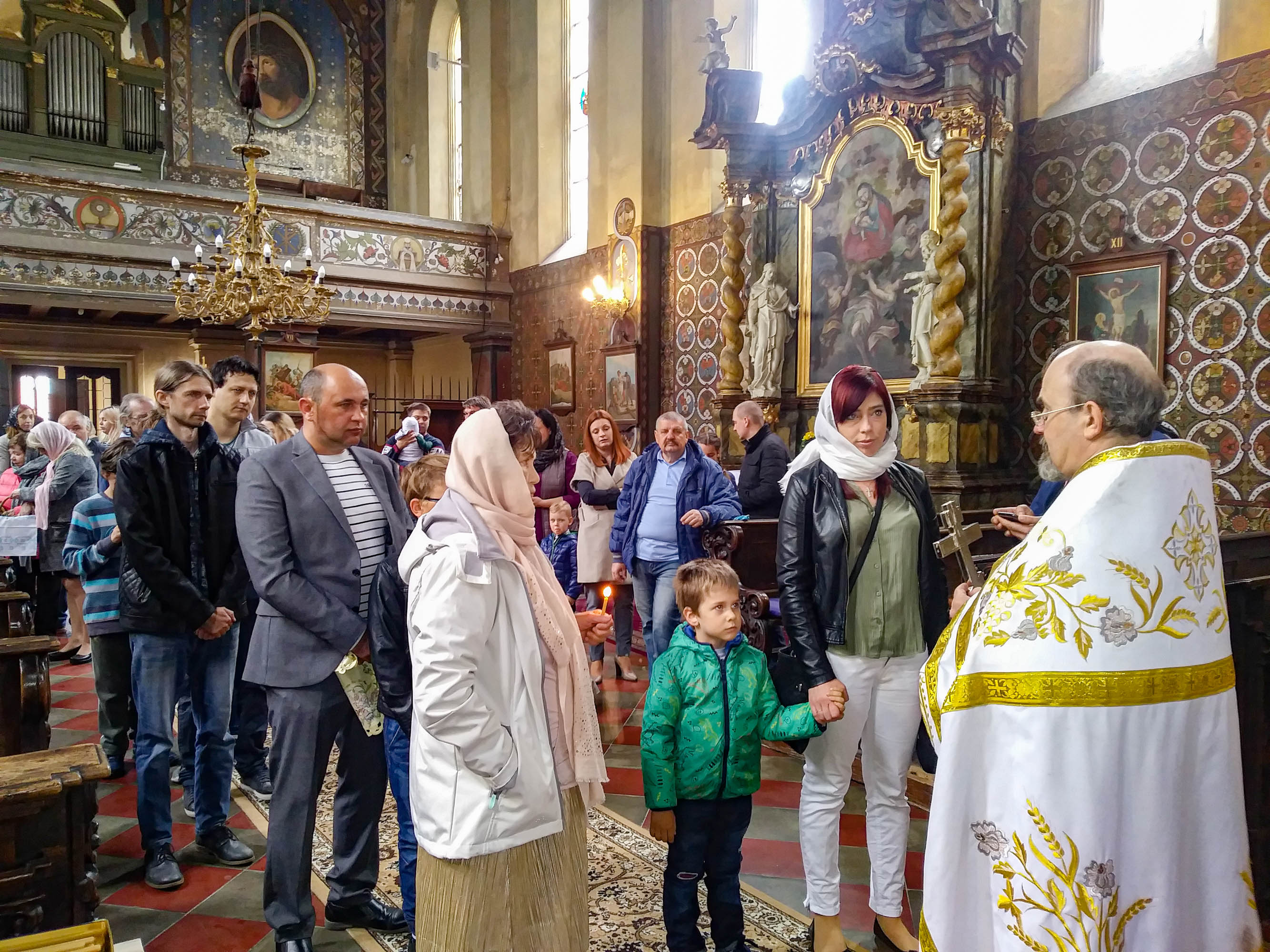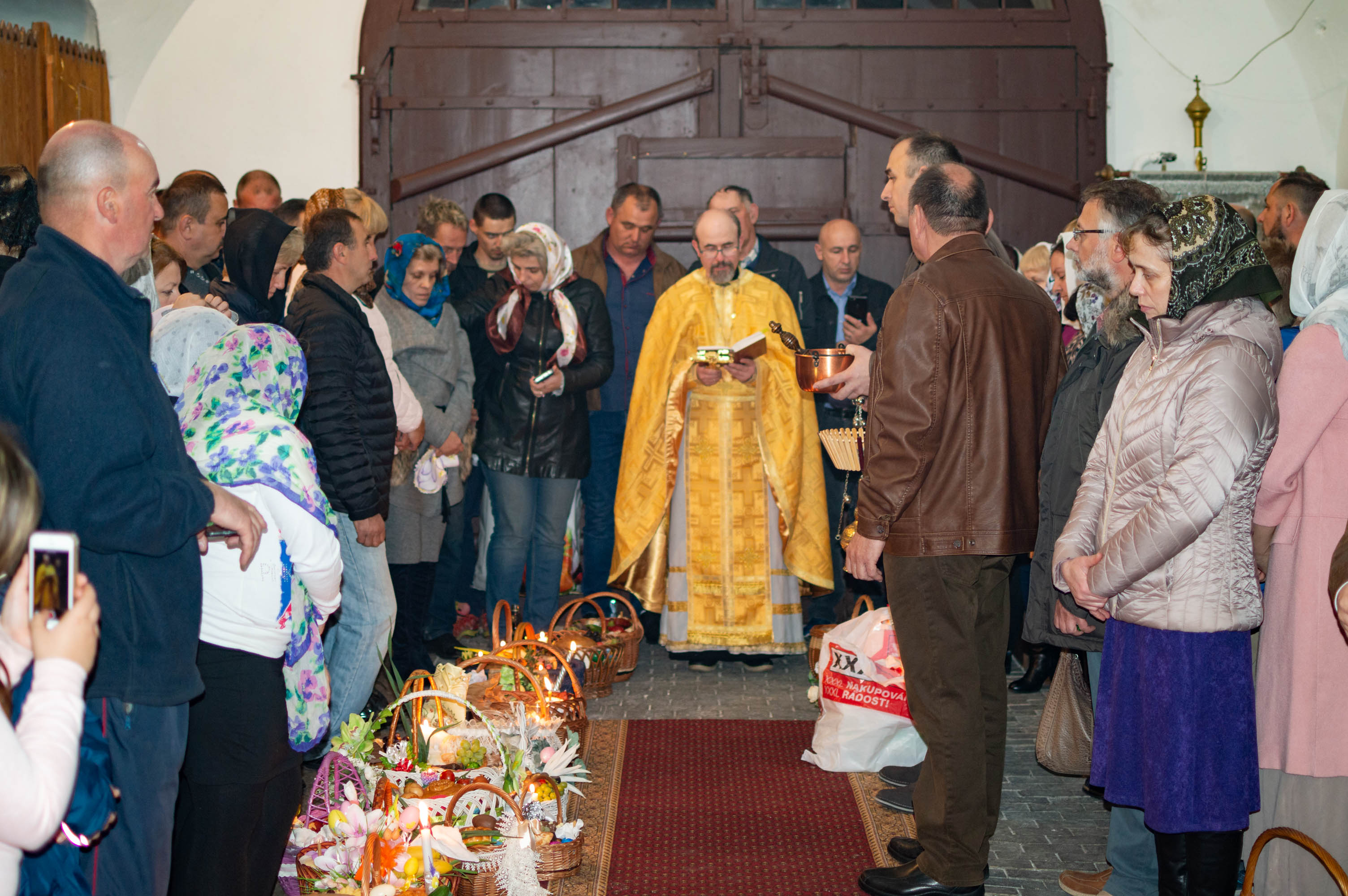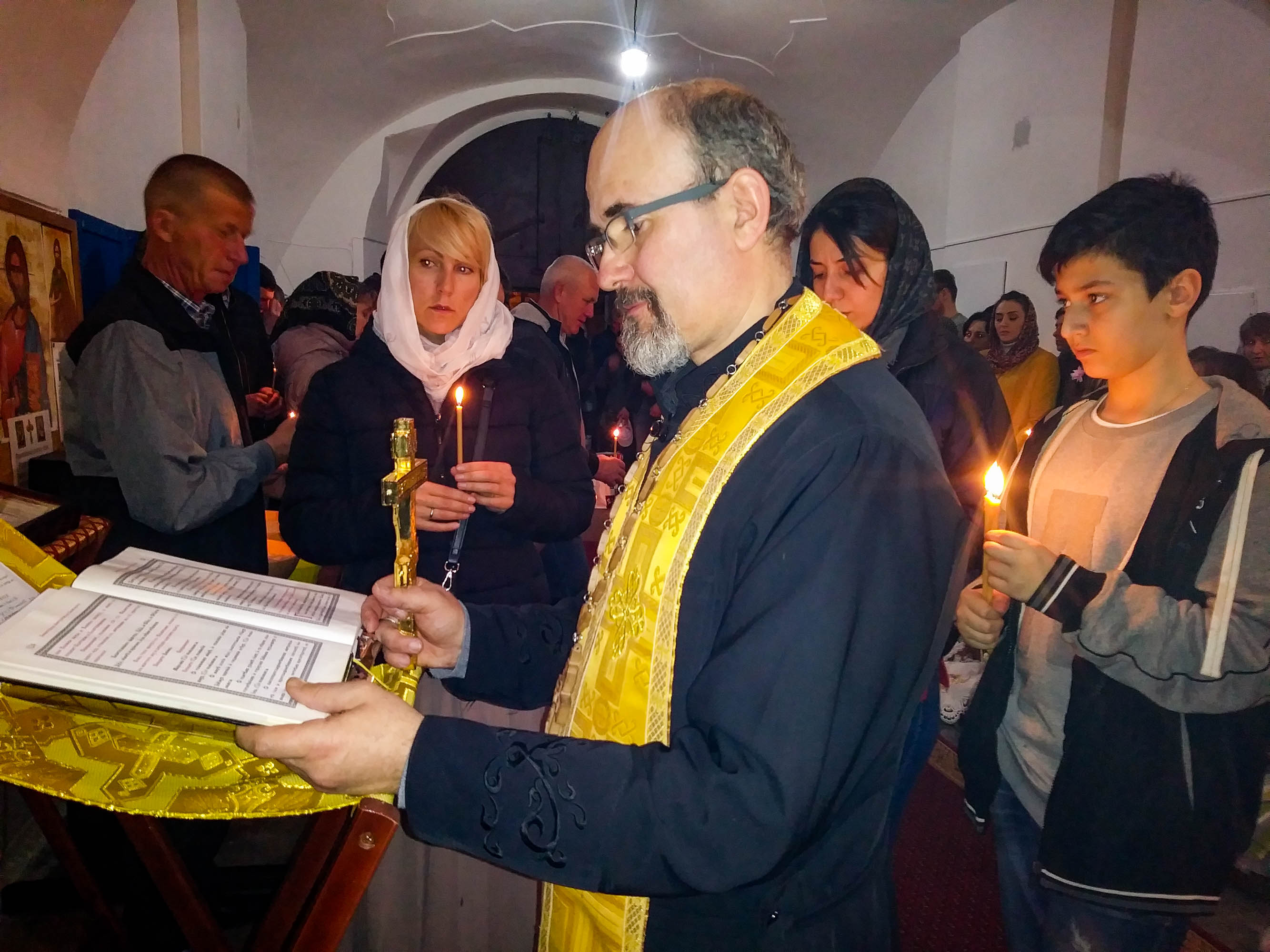 Oslavy Zmrtvýchvstání našeho Pána Ježíše Krista jsme započali již v sobotu večer čtením skutků sv. Apoštolů před Božím hrobem. Poté následoval slavnostní průvod s rozžehnutými svícemi kolem náměstí sv. Václava, po kterém následovala Paschální jitřní s čtením ze sv. Evangelia přede dveřmi chrámu. Od začátku jitřní se začal všude rozléhat zpěv troparu Christos voskrese, který nám připomínal radostnou zvěst o Zmrtvýchvstání našeho Spasitele. Po jitřní otec Konstantin požehnal Paschální pokrmy, které věřící přinesli. Poté se během Paschální svaté liturgie ti, kteří se během půstu na tento velký den připravovali, sjednotili s naším Spasitelem Ježíšem Kristem ve sv. Eucharistii.