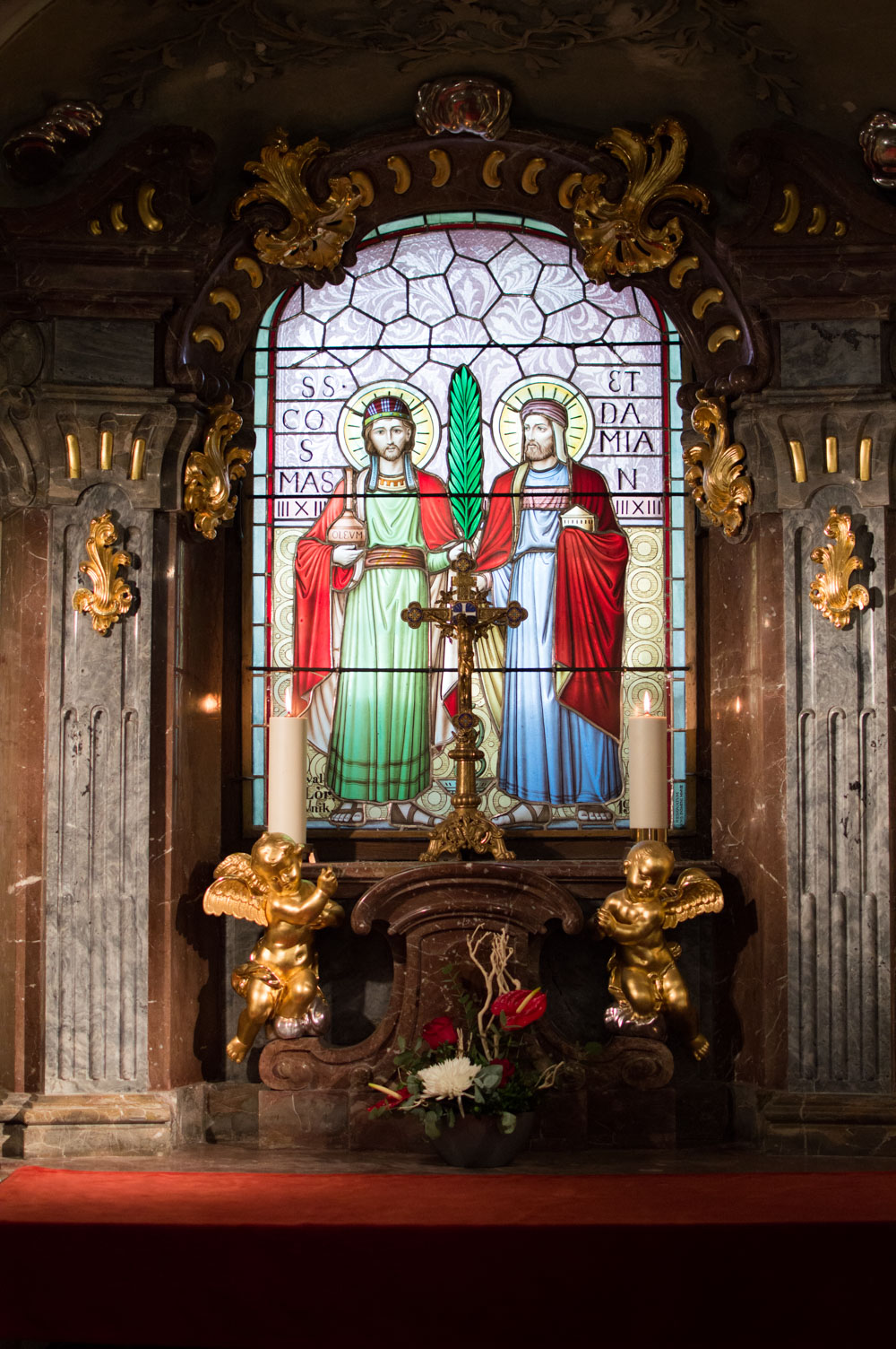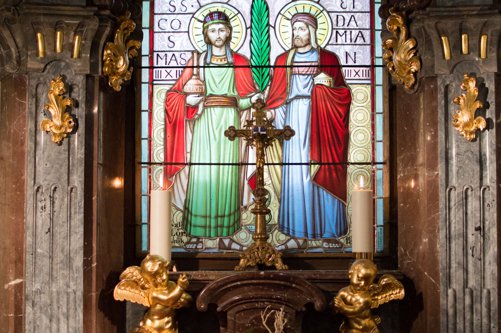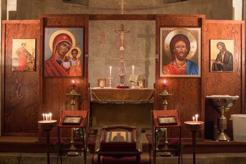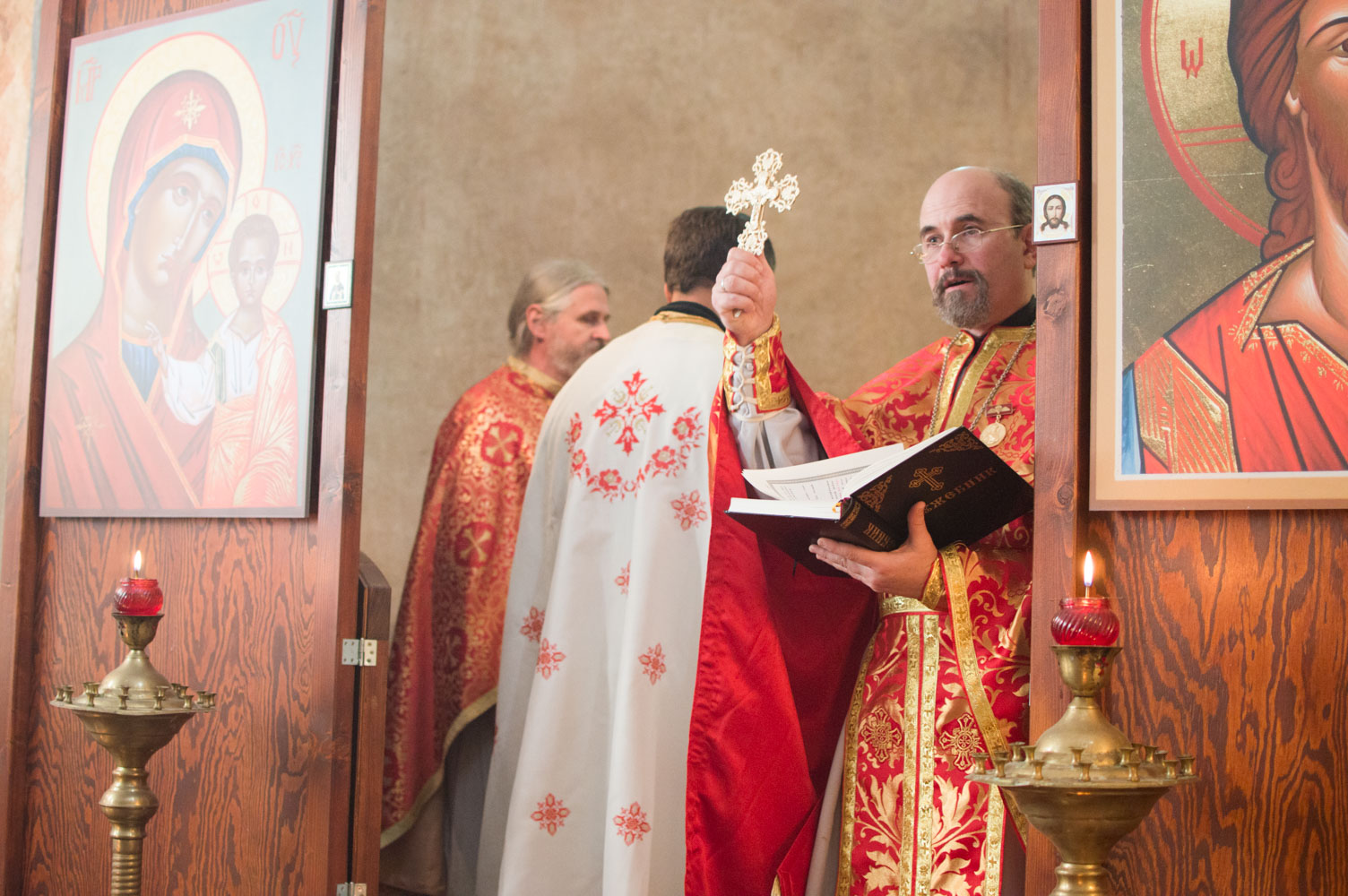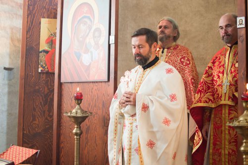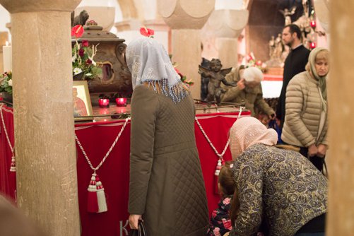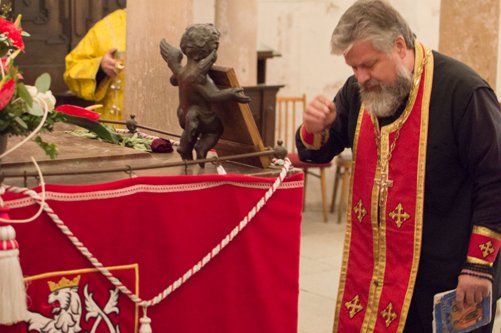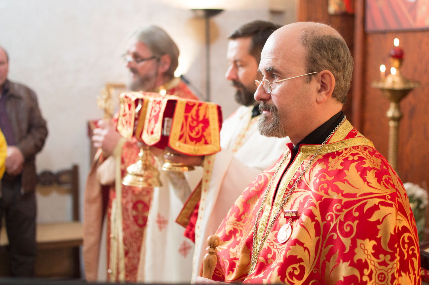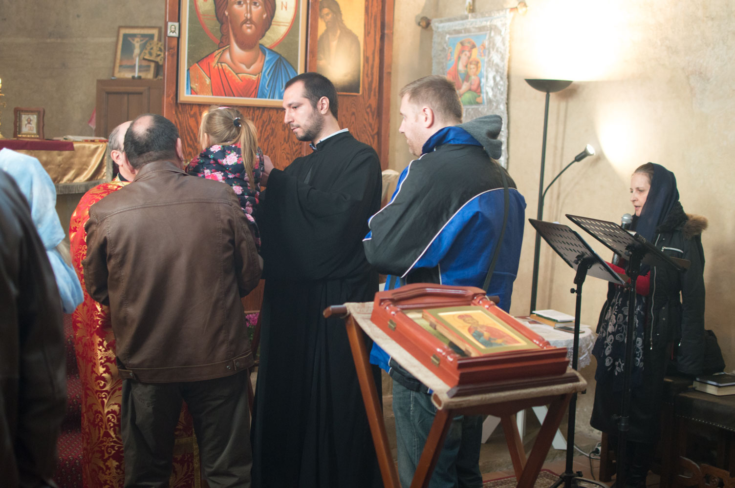 Poutní sv. Liturgie se konala v chrámu sv. Klimenta, kde se již druhým rokem pravidelně slouží pravoslavné bohoslužby. Po liturgii jsme se odebrali do vedlejšícho kostela sv. Václava, kde jsme se v kryptě sv. Kosmy a Damiána poklonili hrobu sv. Václava.