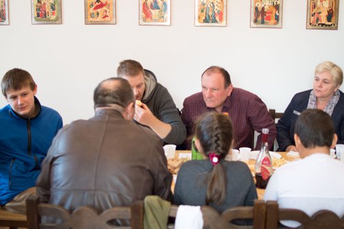 Poté jsme šli do pastoračního centra naší církevní obce, které se nachází naproti chrámu přes ulici, kde pro poutníky bylo připraveno bohaté občerstvení.