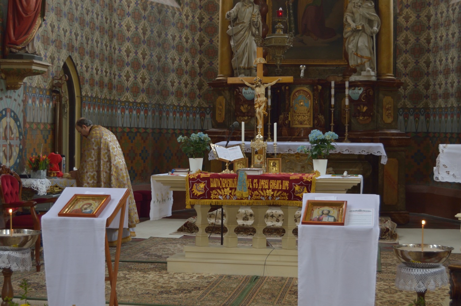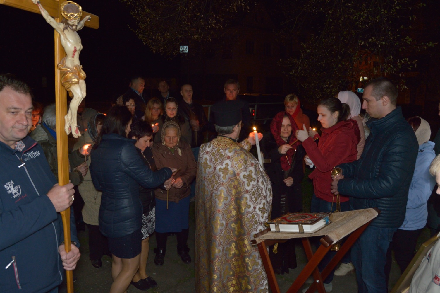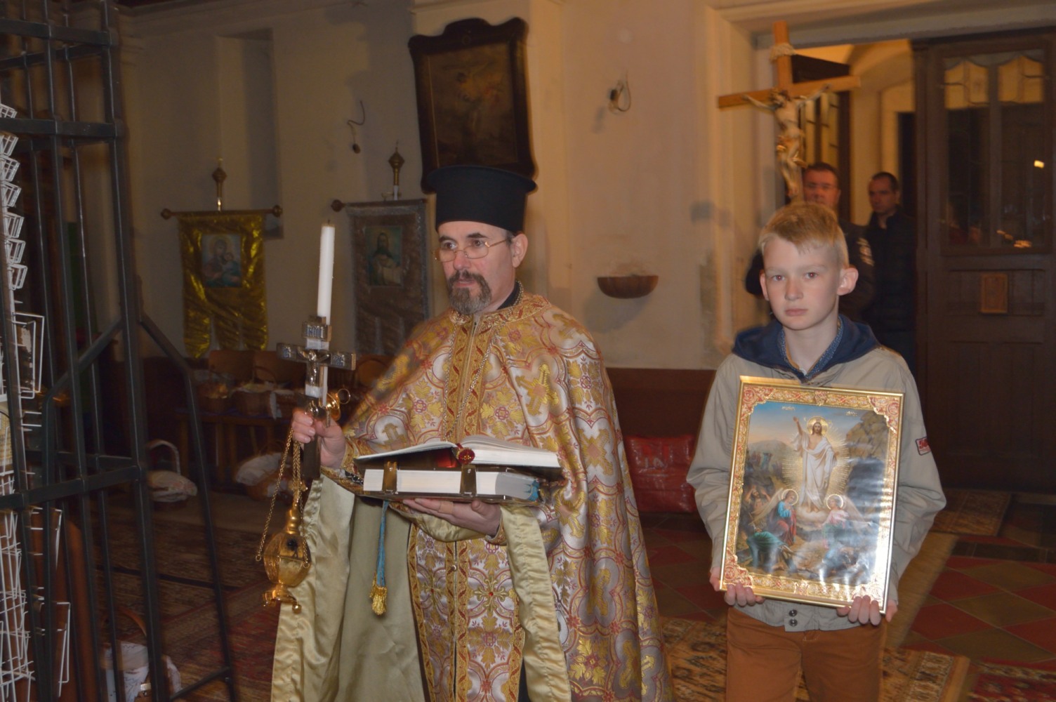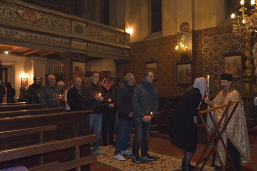 Oslavu letošních Velikonoc jsme započali v sobotu 30. 4. slavnostní Paschální jitřní bohoslužbou, které předcházelo čtení knihy Skutků sv. Apoštolů a Půlnočnice. O půlnoci se ticho v zahradě před chrámem sv. Kateřiny proměnilo v radostný zpěv všech přítomných „Christos Voskrese iz mertvich...“. Světlo paschálních svíček zazářilo ve tmě a radost z Kristovo Zmrtvýchvstání naplnila naše duše.