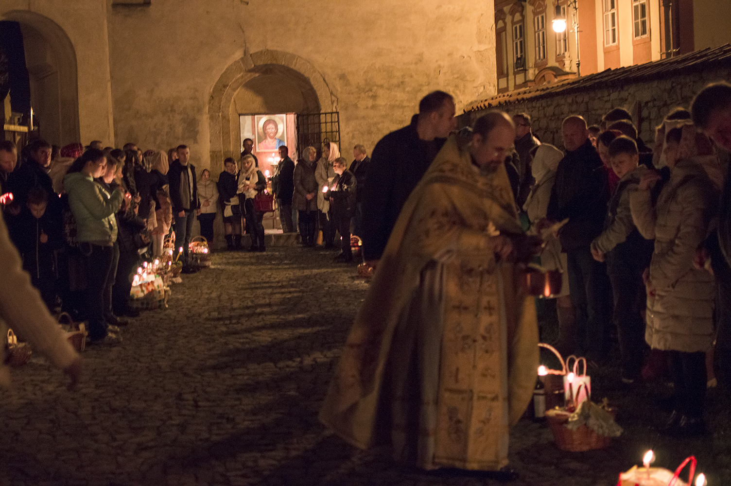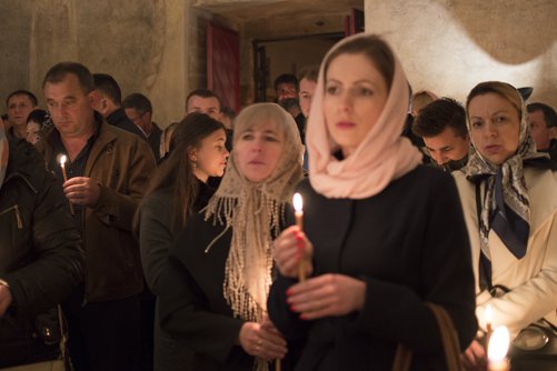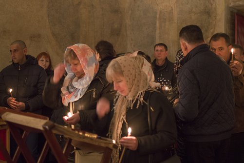 Po čtení ze skutků apoštolů jsme odsloužili půlnoční bohoslužbu, po které následovala paschální jitřní a liturgie sv. Jana Zlatoústého.